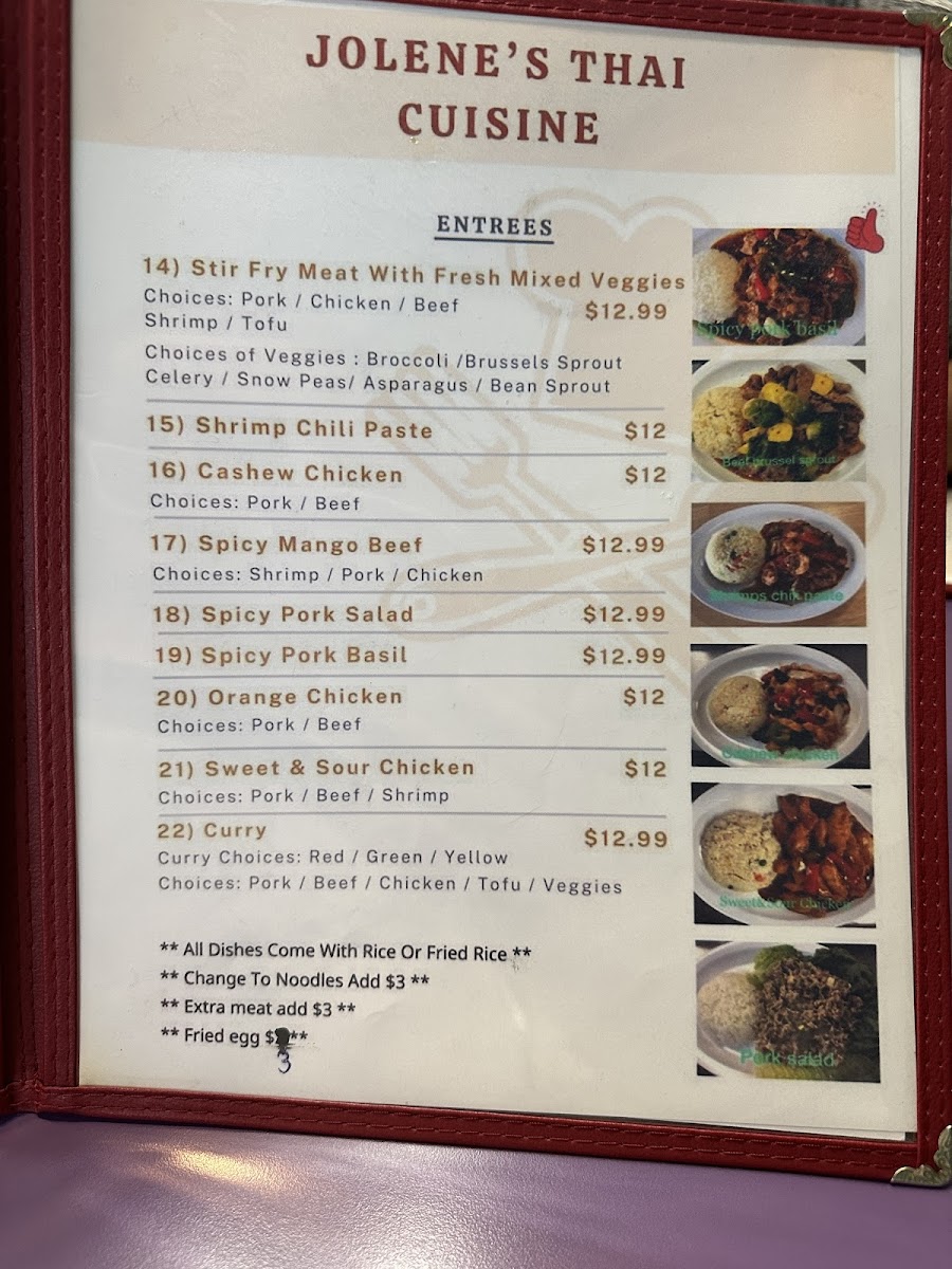 What sets Jolene's apart is not just its inviting atmosphere, but the fabulous offerings on the menu. From the spicy notes of the Spicy Basil to the delightful Sweet & Sour and flavorsome Red Curry, the dishes are crafted using fresh, locally sourced ingredients, much of which the owner grows herself. The use of fresh basil has particularly captivated diners, showcasing the attention to detail that goes into every recipe.
