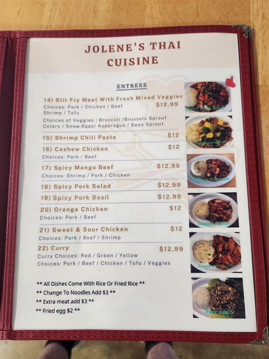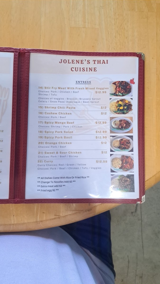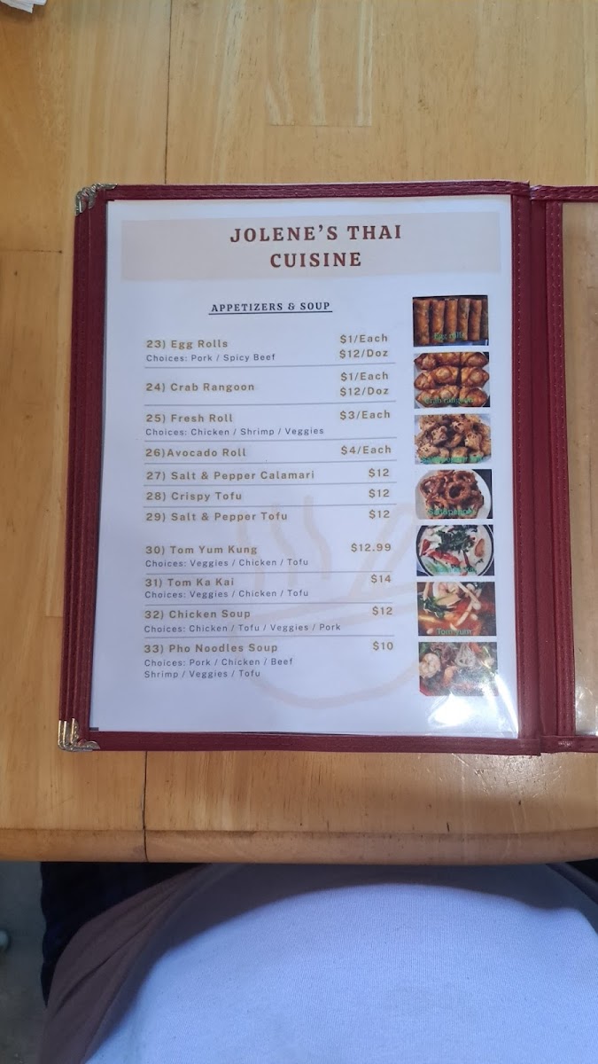 At Jolene's, you will discover that great food lies not just in the presentation but in the experience. The welcoming atmosphere and attentive service guarantee a memorable visit. Whether you're a Thai food aficionado or a curious newcomer, Jolene's promises a delightful culinary adventure.